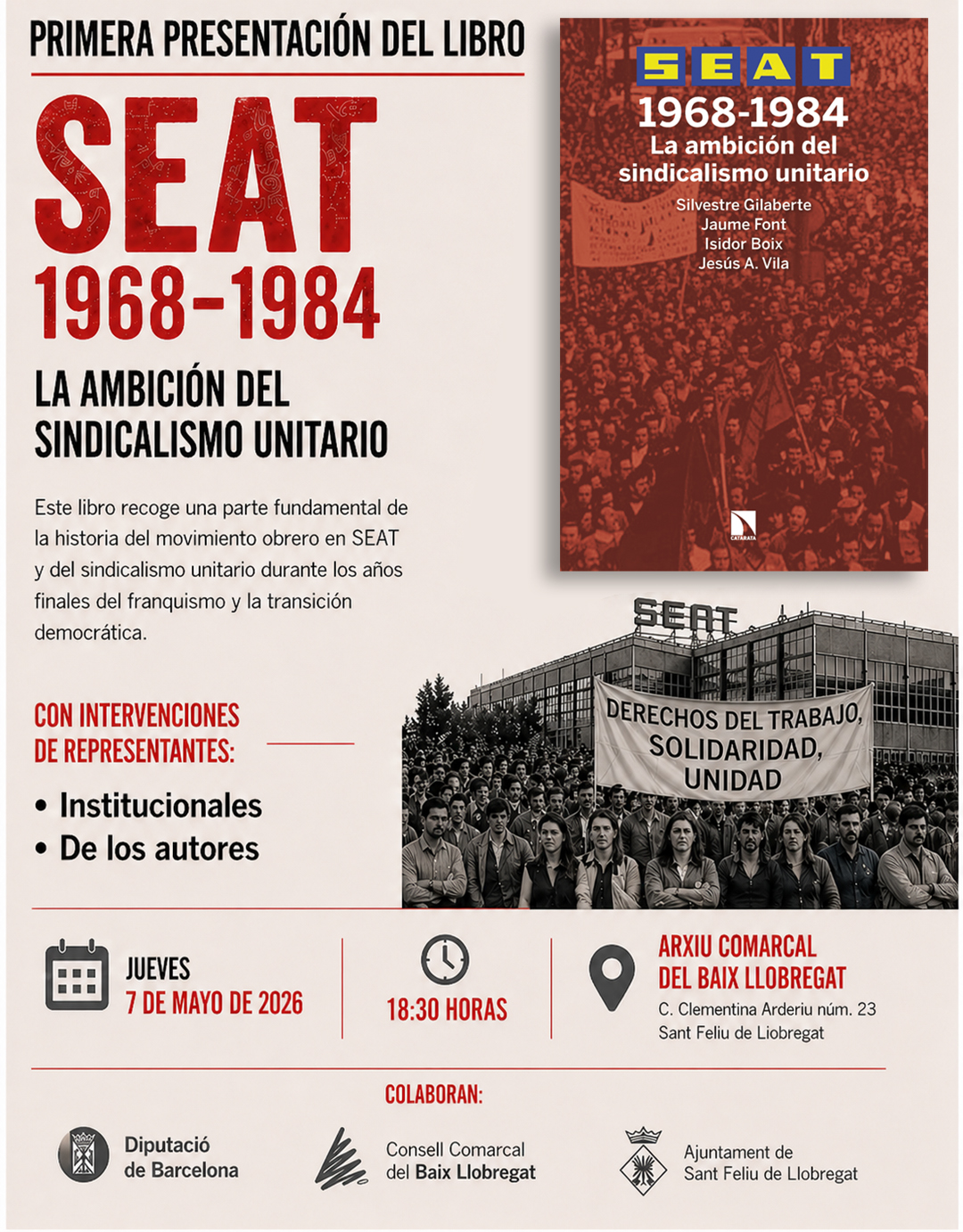 Sant Feliu de Llobregat: presentación de 'SEAT. 1968-1984. La ambición del sindicalismo unitario'